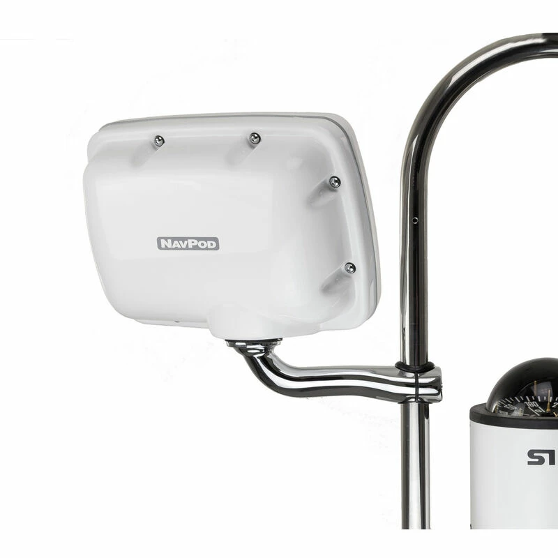 Best used for mounting of an autopilot control, sailing instrument, or small chartplotter onto an existing pedestal guard, NavPod’s RailMountย fits onto any 1โ or 1.25โ diameter tube. With a RailMount, the NavPodย can rotate 180ยฐ for easy viewing while sitting under the dodger on a rainy day. All wiring runs from the NavPod down the center of the stainless steel arm and into the pedestal guard. This application provides a clean and sturdy installation for electronics, without replacement of the pedestal guard.