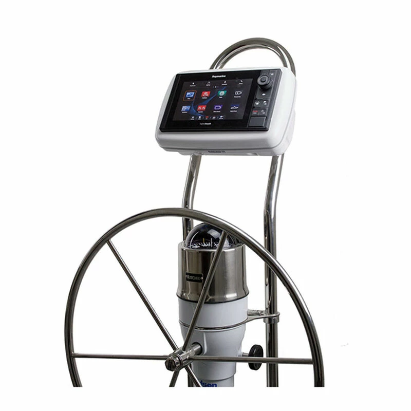 SailPods are for mounting a single radar or chartplotter at the helm. Navigation at your finger tips. “Where you need itβ¦when you need it”. SailPods are the smart solution for mounting your radar or chartplotter at the helm where you can easily operate and clearly see the fine details of the screen. NavPods have a high gloss finish, giving you a clean mounting solution while concealing unsightly wires. Nickel chrome plated tamperproof screws provide a little bling and a lot of security. Designed with a double gasket waterproof seal, NavPods protect your electronics from the harshest of wet offshore boating conditions. A SailPod is best mounted on a single bend AngleGuard or use a double bend AngleGuard to fit an InstrumentPod on the top vertical section and SailPod below on the angled section.